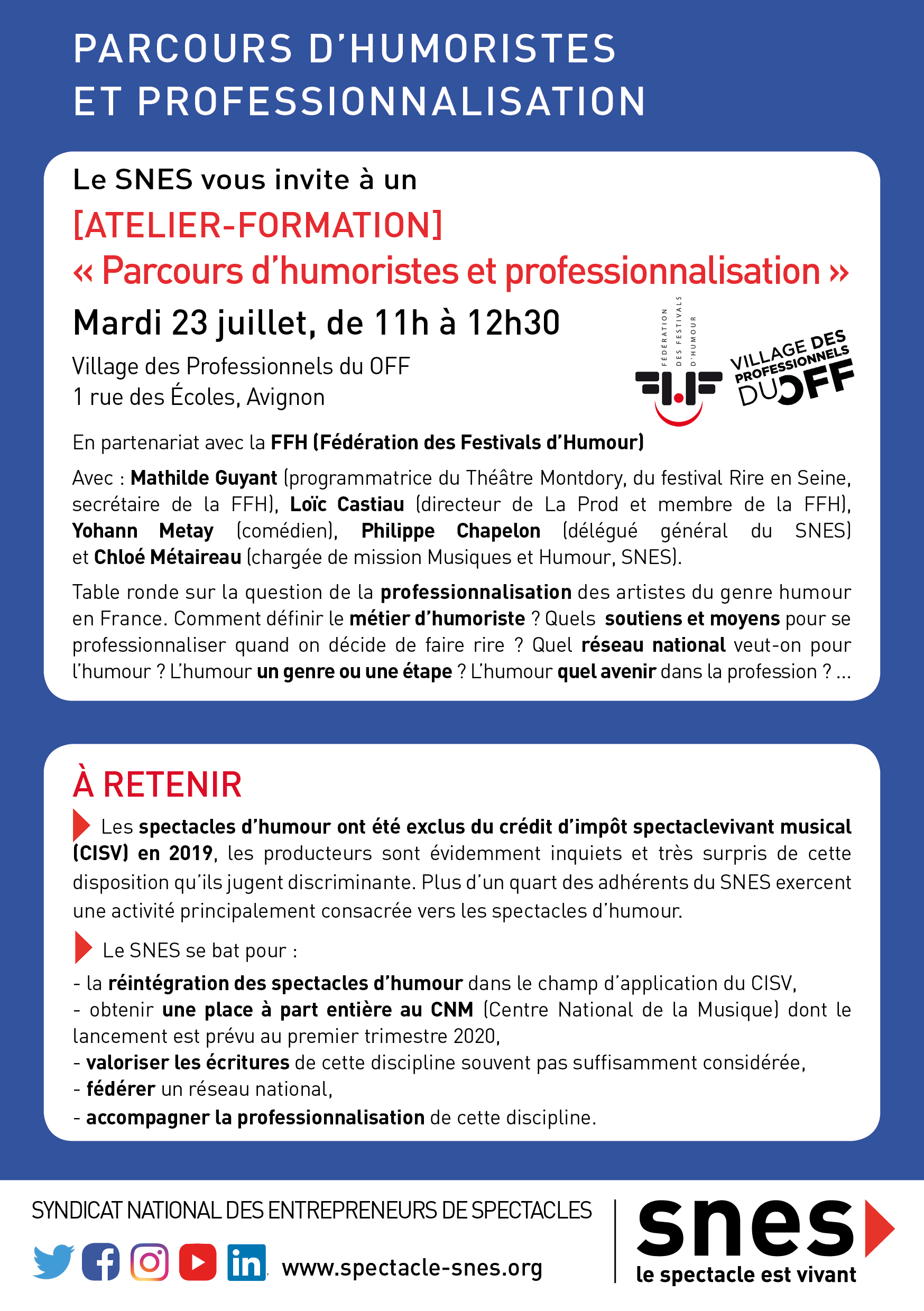 En 2019, le SNES a reconduit pour la 9ème année, ses actions en Avignon : lancement presse, programme SNES Avignon, débats, permanences ...