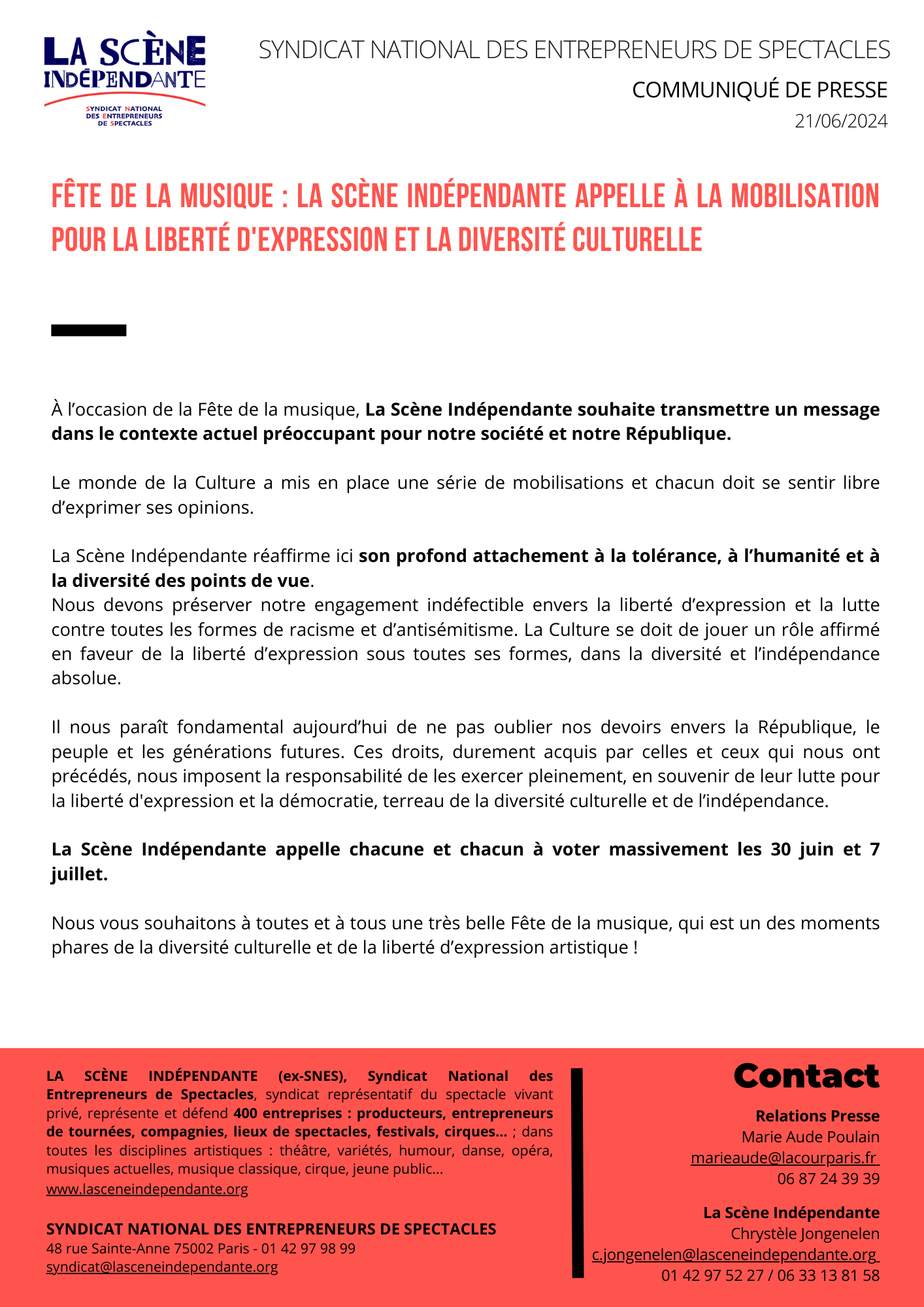 31/05//2024 - Off décalé : La Scène indépendante demande une compensation ▶️